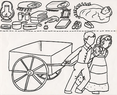 Here is a cute Pioneer Day color and glue ACTIVITY page to send home for the kids to color and cut out and fill the handcart. It is found HERE at Squigglebop. |